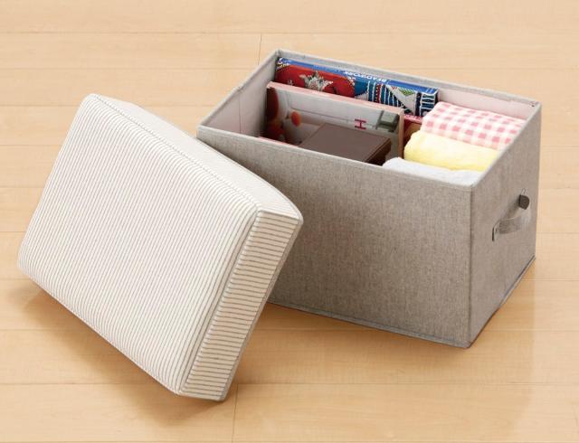 小物をすっきり収納、チェアやオットマンにもなる収納ボックス