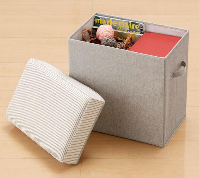 小物をすっきり収納、チェアやオットマンにもなる収納ボックス