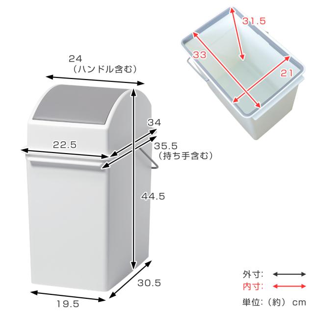 ゴミが捨てやすい開口部の広いスイングタイプです。上面がスイングするので子供でもゴミ捨てが簡単に行えます。ゴミを押し込めば開き、勝手に戻ってくるので、中身が見えないのもスイングタイプの良いところです。