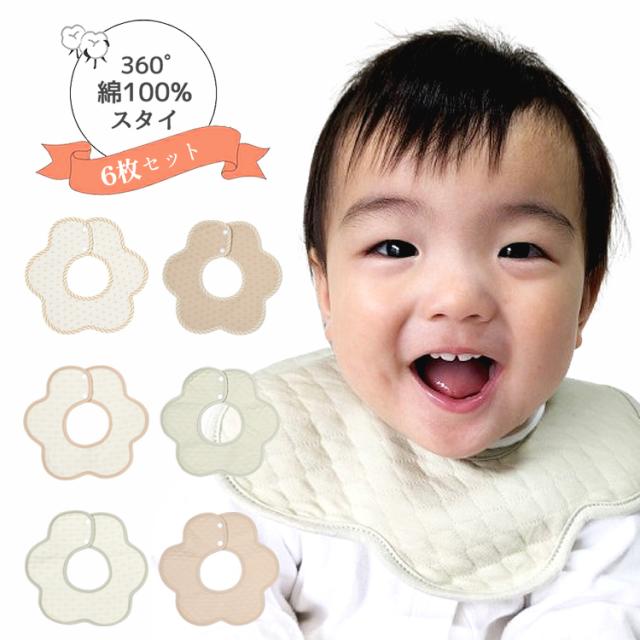 スタイ 綿100% 6枚セット よだれかけ 防水 ベビー 男の子 女の子 赤ちゃん 子供 ガーゼ おしゃれ よだれカバー お食事エプロン かわいい 保育園 食事用 ビブ スタイセット シンプル コットン 綿 シンプル 無地 可愛い