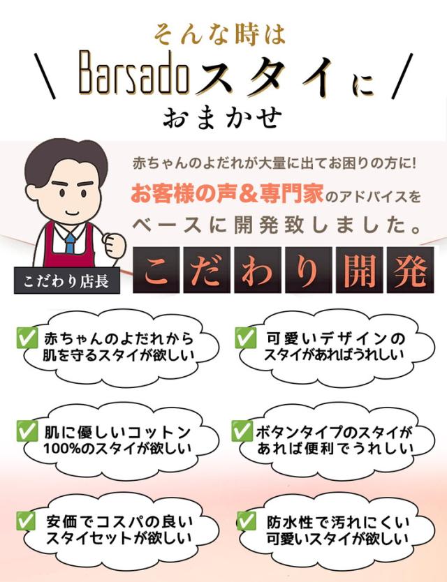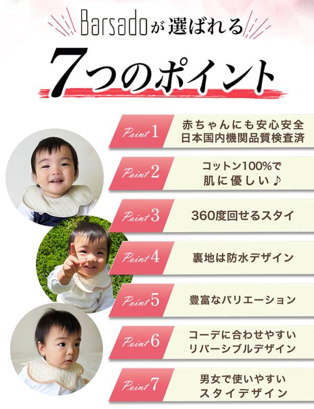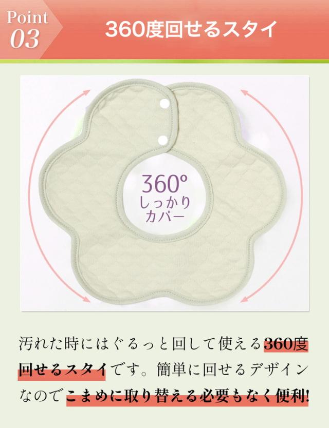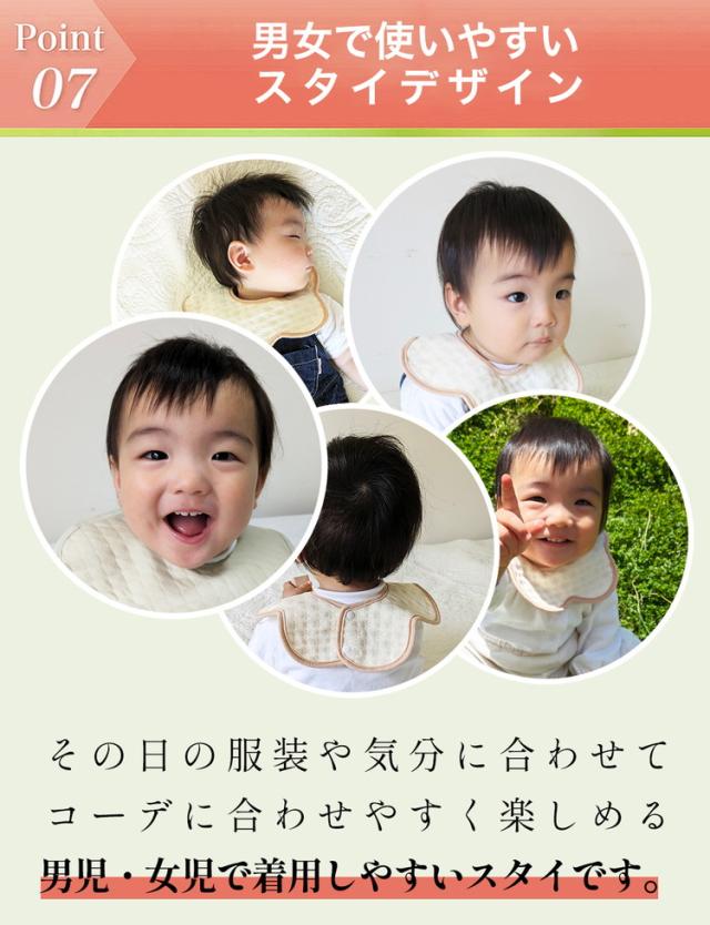 よだれたっぷりの赤ちゃんも首元の肌荒れを抑え、お肌を守ります。