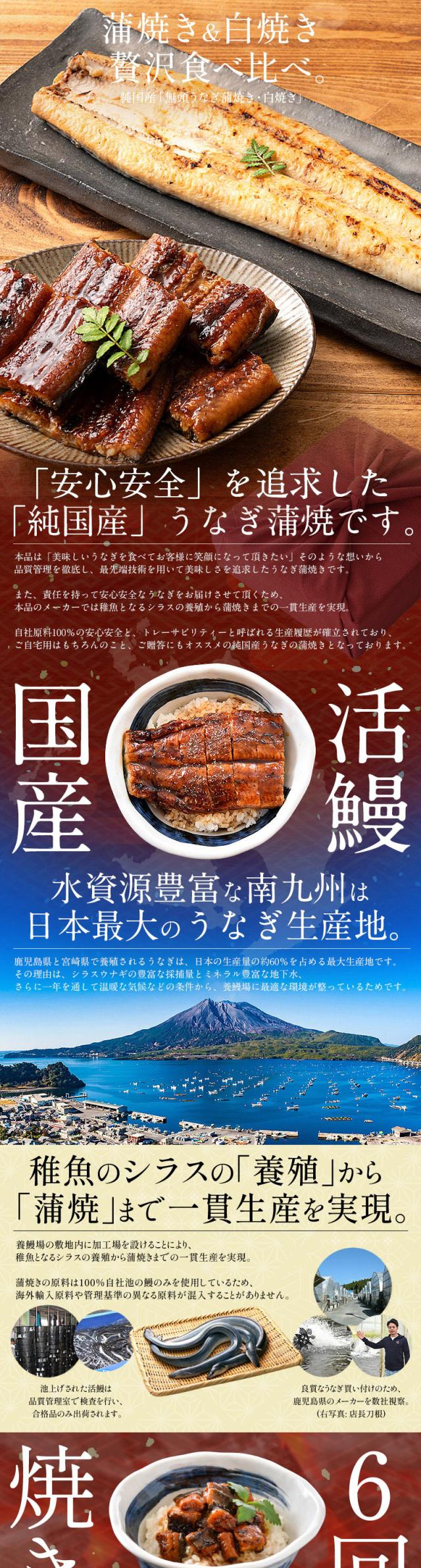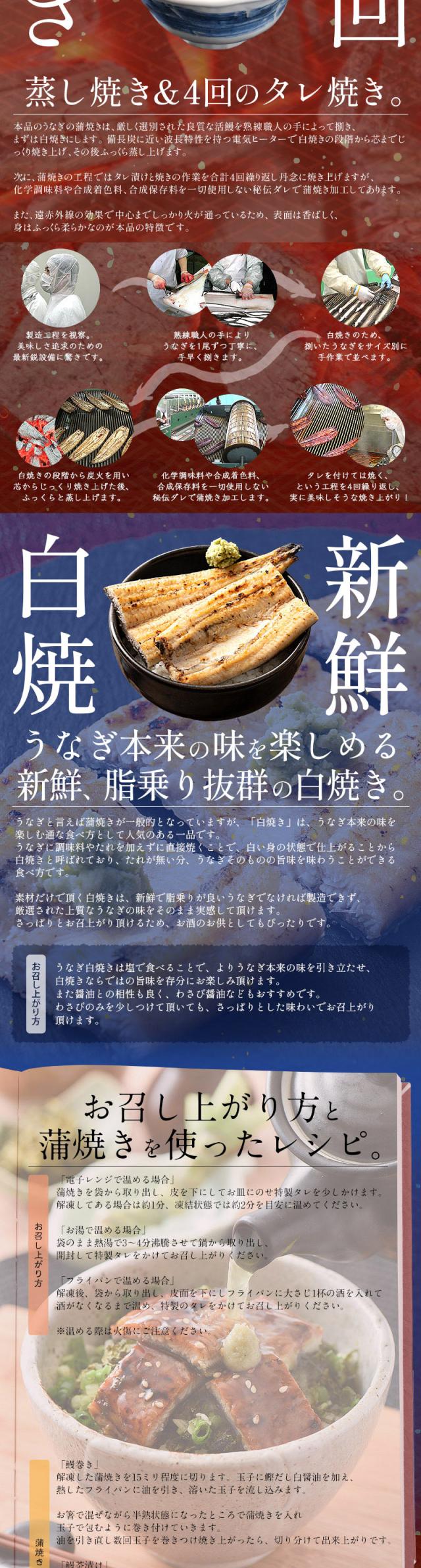 うなぎ白焼き:うなぎ(鹿児島県産、宮崎県産)