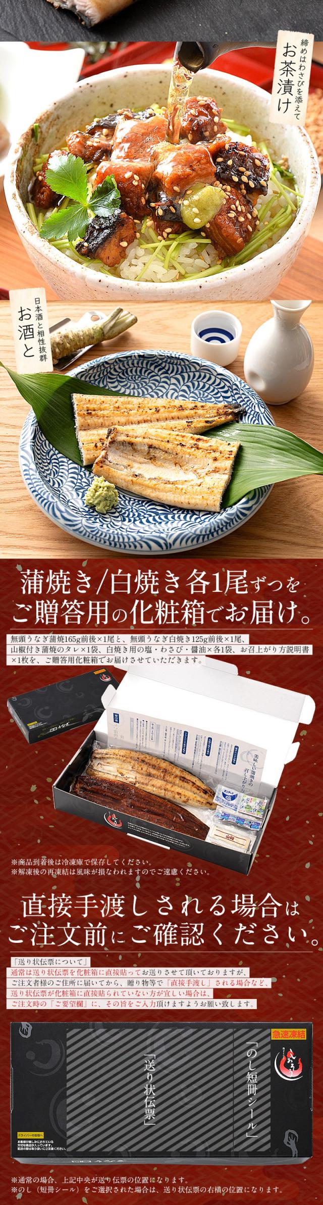 うなぎ 蒲焼き 165g前後 白焼き 125g前後 セット 2種 無頭 国産 鰻 ウナギ 蒲焼き 蒲焼 鰻の蒲 化粧箱 ギフト プレゼント お歳暮