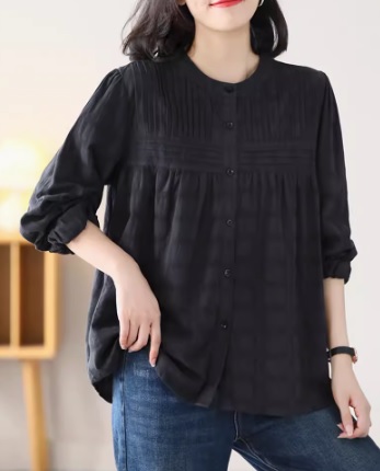 トップス シャツ ブラウス おしゃれ シンプル ゆったり 白 黒 綿 アプリコット 無地 ラウンドネック 長袖 秋 春 大きいサイズ 大人可愛い 10代 20代 30代 お出かけ デート レトロ キュート トレンド