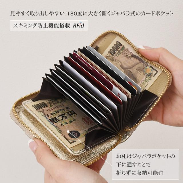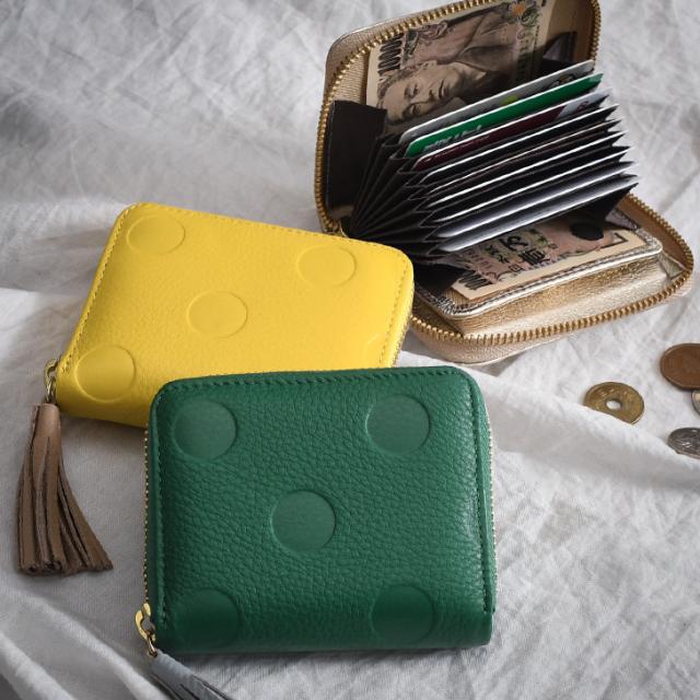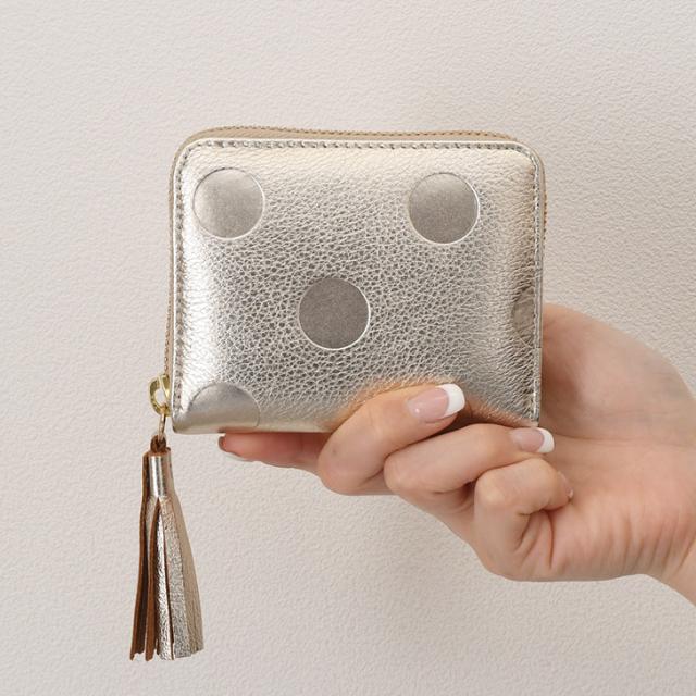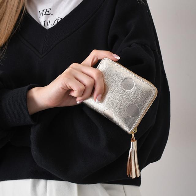 新作 カードウォレット 財布 ドット柄 ペルケ perche ジャバラ メタリック 本革 お札を折らない おしゃれ 小銭入れ 札 二つ折り 水玉