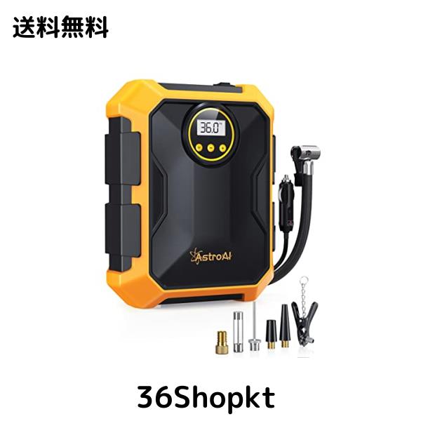 AstroAI エアコンプレッサー 車の空気入れ 自動車用 DC 12V 100PSI LEDライト付き 自動電源オフ リアルタイム画面 米式/仏式対応 自転車/