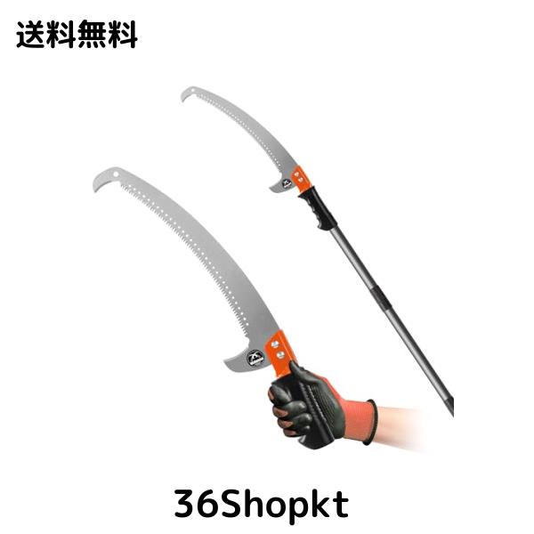 【安全保証と耐久性のある素材】:ポールは高品質のスチールで作られ、パウダーコートが施されています。また、ノコギリの刃は錆びにくいMn鋼で作られています。滑り止めハンドルグリップは快適で安全です。このポールソーは、梯子に登ることなく、高い位置の枝や葉を剪定するのに十分な強度があります。ハンドルの追加補強ネジにより、ソーヘッドがポールに十分に締まり、落下による危険がありません。