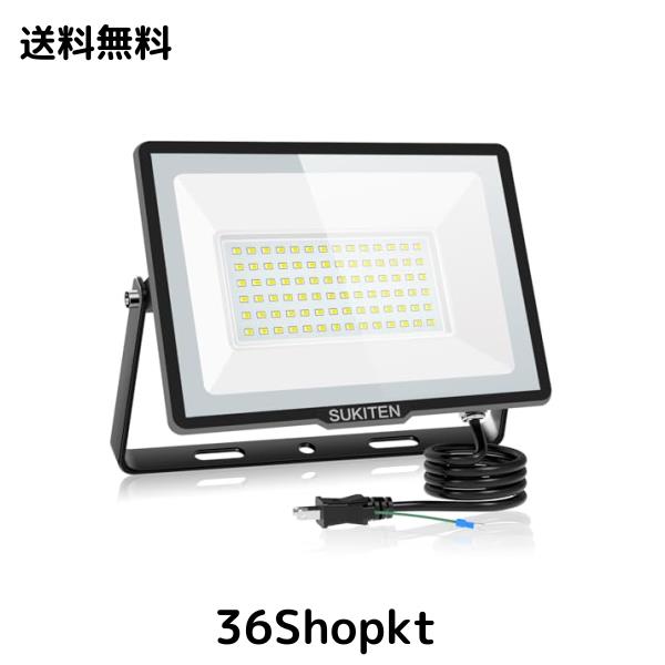 SUKITEN LED投光器 投光器 led 作業灯 屋外 100W 防水 100v 極薄型 15000LM 高輝度 昼光色 6500K 120°広角 IP66 省エネ 投光器ledライト