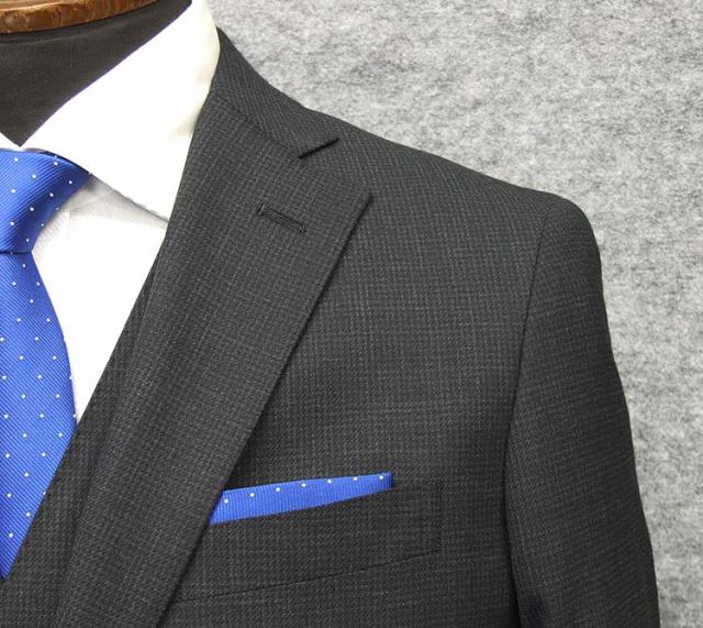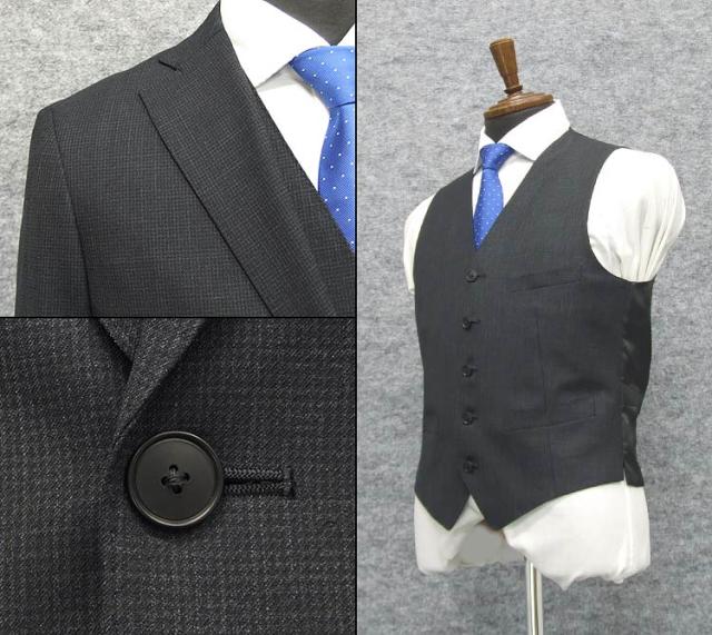 通年 スタイリッシュ3ピーススーツ 炭黒/マイクロチェック[A体][AB体][BB体] J18020