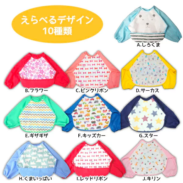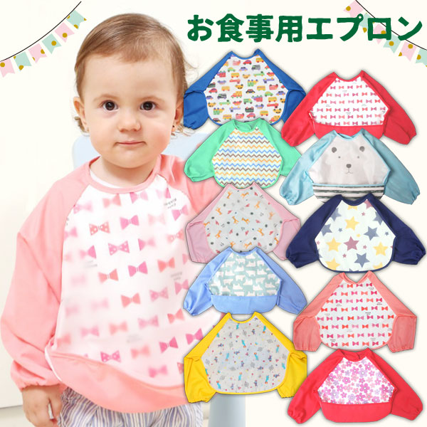 【最安値挑戦中】お食事エプロン Mサイズ 1枚 ポケット 長袖 スタイ よだれかけ 防水 かわいい 赤ちゃん ベビー よだれかけ 離乳食 男の子 女の子 くま お花 リボン くるま 星 キリン【全10種類】 ネコポス便