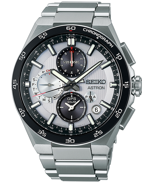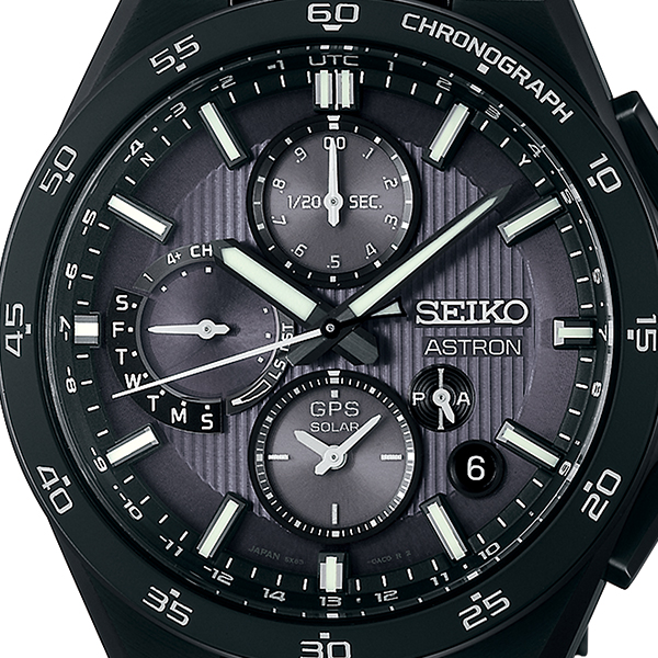 キャリバーの進化と共に脈々と受け継がれるGPSソーラーアストロンの王道デザインを更なる高みに昇華させた次世代のスポーティデザインを表現。新キャリバー5X83の特徴である1/20秒クロノグラフを強調した、ASTRON初となる躍動感のある縦三つ目のダイヤルレイアウト、スポーティなダイヤルデザインと相性の良い硬質感のある二体構造のセラミックスベゼルを採用。ベゼル1時位置には「CHORNOGRAPH」を堂々と表記し、クロノグラフを搭載した新しいNEXTERとしての精緻な佇まいを表現しております。腕なじみの良い低重心のチタンケースに高級感のあるデュアルカーブサファイアガラスを採用。