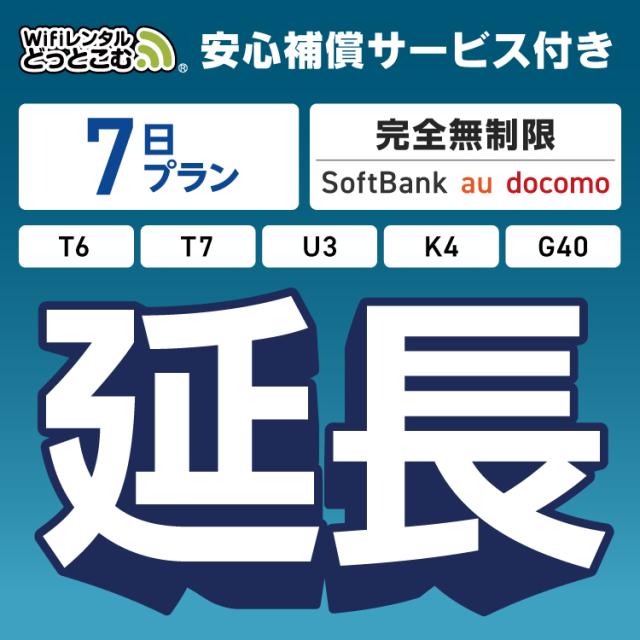 【延長専用】 安心補償付き wifi レンタル 完全無制限 T6 T7 U3 K4 G40 7日 ルーター wi-fi ポケットwifi