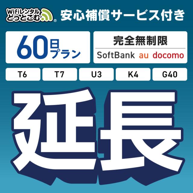 【延長専用】 安心補償付き wifi レンタル 完全無制限 T6 T7 U3 K4 G40 60日 ルーター wi-fi ポケットwifi