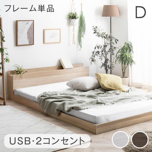 【正午〜P5%還元】 ベッド ダブル フレーム 単品 USB・2コンセント&スマホスタンド付 フロアベッド ローベッド ベット ベッドフレーム ダブルベッド ヘッドボード すのこベッド すのこ 宮付き 木製 宮棚 宮 棚 ニュアンスカラー おしゃれ 北欧