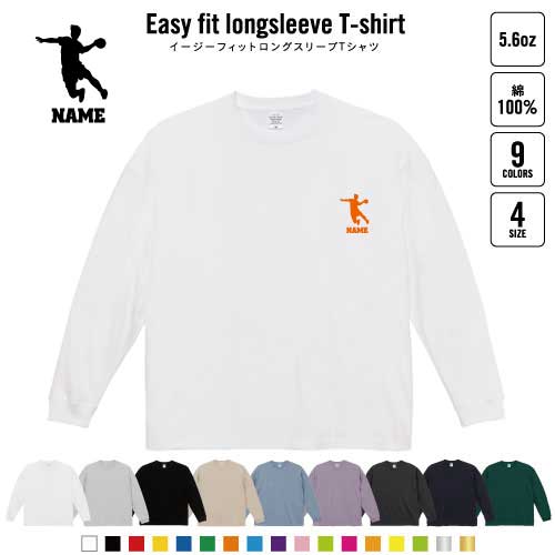 ハンドボール 名入れイージーフィットロングスリーブTシャツ ビッグシルエット 長袖 ロンT ゆるかわ 韓国風 アメカジ トレンド レイヤード だぼだぼ B系 ストリート系