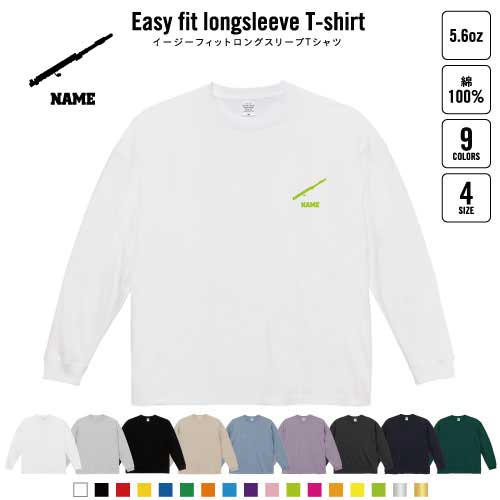 フルート 名入れイージーフィットロングスリーブTシャツ ビッグシルエット 長袖 ロンT ゆるかわ 韓国風 アメカジ トレンド レイヤード だぼだぼ 吹奏楽 楽器 バンド 楽団 クラシック オーケストラ B系 ストリート系