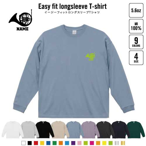 ホルン 名入れイージーフィットロングスリーブTシャツ ビッグシルエット 長袖 ロンT ゆるかわ 韓国風 アメカジ トレンド レイヤード だぼだぼ B系 ストリート系