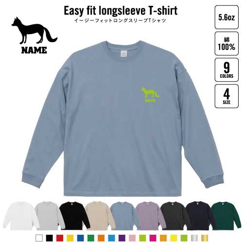 キツネ 名入れイージーフィットロングスリーブTシャツ ビッグシルエット 長袖 ロンT ゆるかわ 韓国風 アメカジ トレンド レイヤード だぼだぼ きつね 狐 フォックス B系 ストリート系