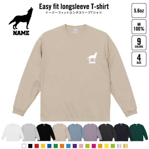オオカミ 名入れイージーフィットロングスリーブTシャツ ビッグシルエット 長袖 ロンT ゆるかわ 韓国風 アメカジ トレンド レイヤード だぼだぼ 狼 ウルフ wolf B系 ストリート系