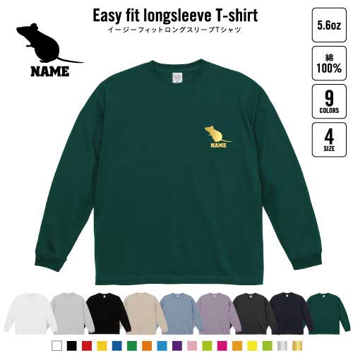 ネズミ 名入れイージーフィットロングスリーブTシャツ ビッグシルエット 長袖 ロンT ゆるかわ 韓国風 アメカジ トレンド レイヤード だぼだぼ B系 ストリート系