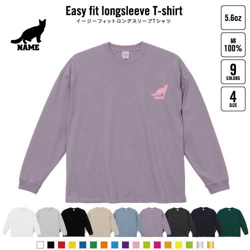 オリエンタルロングヘアー 名入れイージーフィットロングスリーブTシャツ ビッグシルエット 長袖 ロンT ゆるかわ 韓国風 アメカジ トレンド レイヤード だぼだぼ 猫 ネコ ねこ キャット ペット B系 ストリート系