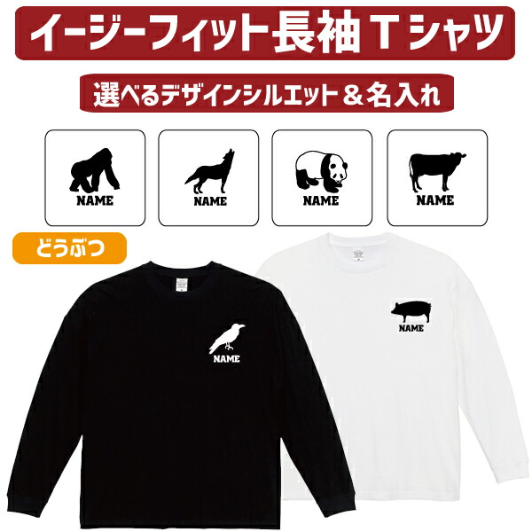 長袖 ロンT 名入れイージーフィットロングスリーブTシャツ「動物1」Tシャツ ゴリラ パンダ サル 牛 ブタ ライオン オオカミ トラ チーター うざぎ ハムスター サイ バク やぎ ひつじ コブラ ワニ ニワトリ アヒル ロバ ラクダ カバ ヘラジカ フェレット