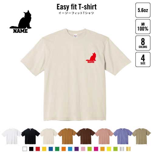 メインクーン 名入れイージーフィットTシャツ ビッグシルエット ワイドTシャツ ゆったりめ ラージ 韓国風 アメカジ トレンド レイヤード だぼだぼ 猫 ネコ ねこ キャット ペット B系 ストリート系