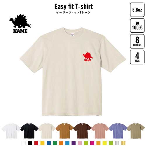 ステゴサウルス3 名入れイージーフィットTシャツ ビッグシルエット ワイドTシャツ ゆったりめ ラージ 韓国風 アメカジ トレンド レイヤード だぼだぼ 恐竜 化石 肉食 草食 雑食 海 陸 B系 ストリート系