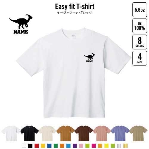 パラサウロロフス 名入れイージーフィットTシャツ ビッグシルエット ワイドTシャツ ゆったりめ ラージ 韓国風 アメカジ トレンド レイヤード だぼだぼ 恐竜 化石 肉食 草食 雑食 海 陸 B系 ストリート系