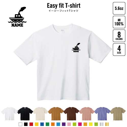 船 名入れイージーフィットTシャツ ビッグシルエット ワイドTシャツ ゆったりめ ラージ 韓国風 アメカジ トレンド レイヤード だぼだぼ 乗り物 海 はたらく 趣味 B系 ストリート系
