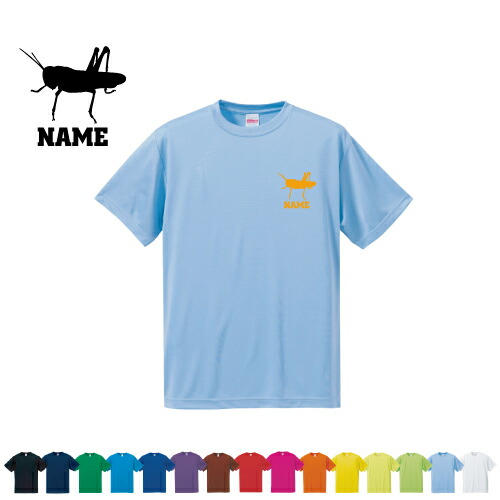 「バッタ」名入れドライTシャツ お名前入り 練習着 レディース メンズ ウェア トップス 運動着 スポーツウェア ジョギング 吸汗速乾 チームTシャツ クラスTシャツ 100 UVカット 昆虫 ピクトグラム