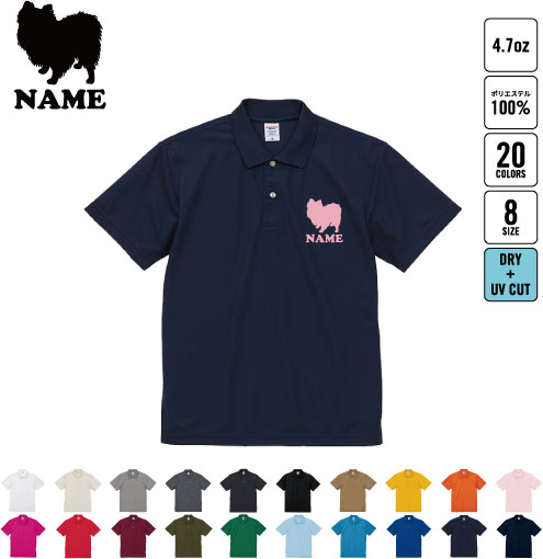 ポメラニアン 名入れドライポロシャツ犬種別シルエット お名前入り フィットネス ジムウェア プラクティスシャツ 運動着 ドッグ ジョギング オリジナルポロシャツ イベントグッズ お揃いウェア チームウェア クラスシャツ 記念シャツ お揃いウェア