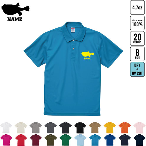「フグ」名入れドライポロシャツ 半袖ポロシャツ おしゃれポロ お名前入り フィットネス ジムウェア プラクティスシャツ 運動着 スポーツウェア ジョギング 河豚、鰒、?、?、?、?、ふぐ刺し チームウェア クラスシャツ 記念シャツ お揃いウェア