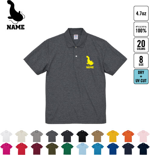 「なまず」名入れドライポロシャツ 半袖ポロシャツ おしゃれポロ お名前入り フィットネス ジムウェア プラクティスシャツ 運動着 スポーツウェア ジョギング 鯰、淡水魚 チームウェア クラスシャツ 記念シャツ お揃いウェア