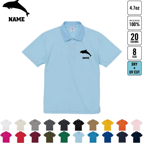 「イルカ」名入れドライポロシャツ 半袖ポロシャツ おしゃれポロ お名前入り フィットネス ジムウェア プラクティスシャツ 運動着 スポーツウェア ジョギング 海豚、鯆、Dolphin チームウェア クラスシャツ 記念シャツ お揃いウェア