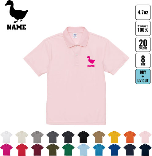 アヒル 名入れドライポロシャツ 半袖ポロシャツ おしゃれポロ お名前入り フィットネス ジムウェア プラクティスシャツ 運動着 家鴨、Duck ジョギング オリジナルポロシャツ イベントグッズ お揃いウェア チームウェア クラスシャツ 記念シャツ お揃いウェア