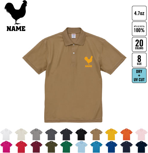 ニワトリ 名入れドライポロシャツ 半袖ポロシャツ おしゃれポロ お名前入り フィットネス ジムウェア プラクティスシャツ 運動着 チキン、鶏 ジョギング オリジナルポロシャツ イベントグッズ お揃いウェア チームウェア クラスシャツ 記念シャツ お揃いウェア