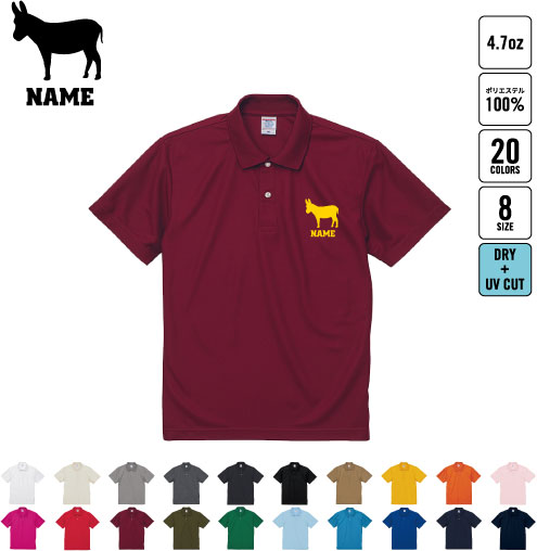 ロバ 名入れドライポロシャツ 半袖ポロシャツ おしゃれポロ お名前入り フィットネス ジムウェア プラクティスシャツ 運動着 うさぎうま、驢馬 ジョギング オリジナルポロシャツ イベントグッズ お揃いウェア チームウェア クラスシャツ 記念シャツ お揃いウェア