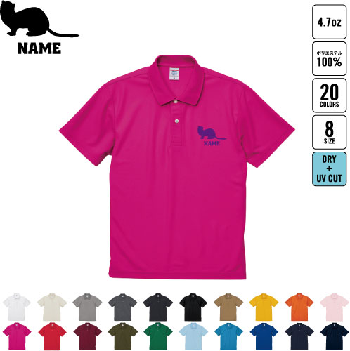 フェレット 名入れドライポロシャツ 半袖ポロシャツ おしゃれポロ お名前入り フィットネス ジムウェア プラクティスシャツ 運動着 イタチ ジョギング オリジナルポロシャツ イベントグッズ お揃いウェア チームウェア クラスシャツ 記念シャツ お揃いウェア