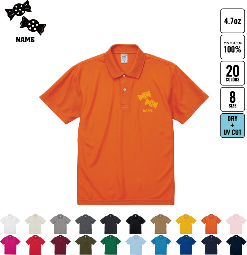 飴 名入れドライポロシャツ 半袖ポロシャツ おしゃれポロ お名前入り フィットネス ジムウェア プラクティスシャツ 運動着 ジョギング 【pls】 チームウェア クラスシャツ 記念シャツ お揃いウェア