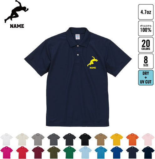 陸上選手 名入れドライポロシャツ 半袖ポロシャツ おしゃれポロ お名前入り フィットネス ジムウェア プラクティスシャツ 運動着 スポーツウェア ジョギング オリジナルポロシャツ イベントグッズ お揃いウェア チームウェア クラスシャツ 記念シャツ お揃いウェア