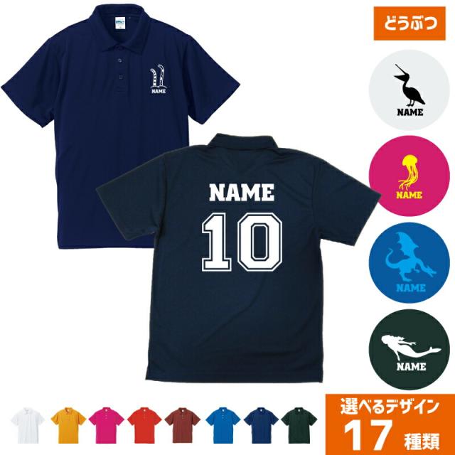 「動物3」背番号&名入れドライポロシャツ チンアナゴ 龍 ドラゴン ペガサス 人魚 オオハシ 白鳥 ツバメ コウモリ キツツキ 鷲 ユニコーン お茶会 チームウェア クラスシャツ 記念シャツ お揃いウェア