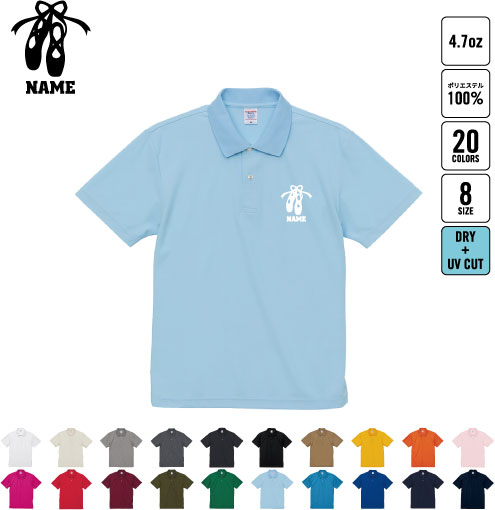 トウシューズ 名入れドライポロシャツ 半袖ポロシャツ おしゃれポロ お名前入り フィットネス ジムウェア プラクティスシャツ 運動着 スポーツウェア ジョギング 踊り 発表 レッスン 舞台 バレエ ポワント チームウェア クラスシャツ 記念シャツ お揃いウェア