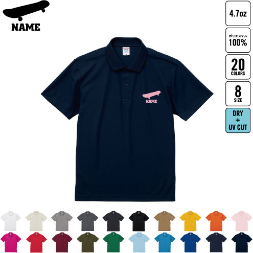 スケボー2 名入れドライポロシャツ 半袖ポロシャツ おしゃれポロ お名前入り フィットネス ジムウェア プラクティスシャツ 運動着 スポーツウェア ジョギング スケートボード 板 ストリート チームウェア クラスシャツ 記念シャツ お揃いウェア