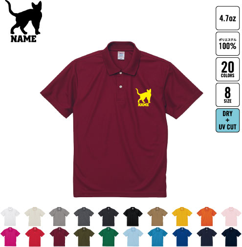 デボンレックス 名入れドライポロシャツ 半袖ポロシャツ おしゃれポロ お名前入り フィットネス ジムウェア プラクティスシャツ 運動着 スポーツウェア ジョギング 猫 ネコ ねこ キャット ペット チームウェア クラスシャツ 記念シャツ お揃いウェア