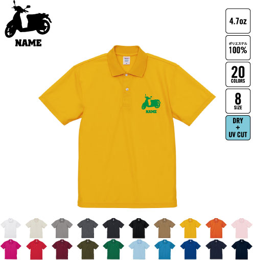 バイク7 名入れドライポロシャツ 半袖ポロシャツ おしゃれポロ お名前入り フィットネス ジムウェア プラクティスシャツ 運動着 スポーツウェア ジョギング 乗り物 チーム 単車 趣味 チームウェア クラスシャツ 記念シャツ お揃いウェア