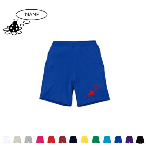 「てんとうむし」 名入れスウェットハーフパンツ バスパン ハーパン スポーツ ダンス ジム フィットネス ショートパンツ 短パン 半ズボン コットン 綿100% スウェット