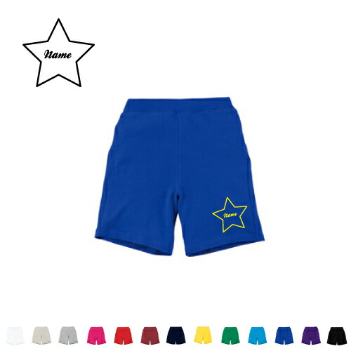 「筆記体スター」 名入れスウェットハーフパンツ バスパン ハーパン スポーツ ダンス ジム フィットネス ショートパンツ 短パン 半ズボン コットン 綿100% スウェット