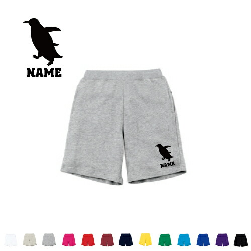 「ペンギン」 名入れスウェットハーフパンツ バスパン ハーパン スポーツ ダンス ジム フィットネス ショートパンツ 短パン 半ズボン コットン 綿100% 人鳥、Penguin