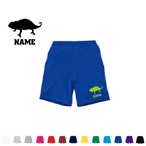 カメレオン 名入れスウェットハーフパンツ バスパン ハーパン スポーツ ダンス ジム フィットネス ショートパンツ 短パン 半ズボン コットン 綿100% chamaeleon、爬虫類